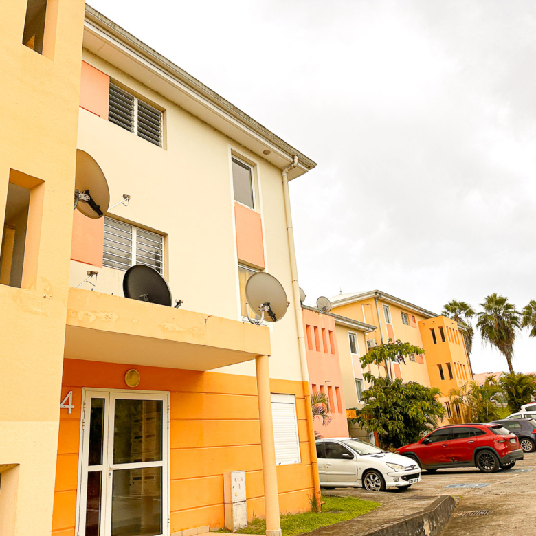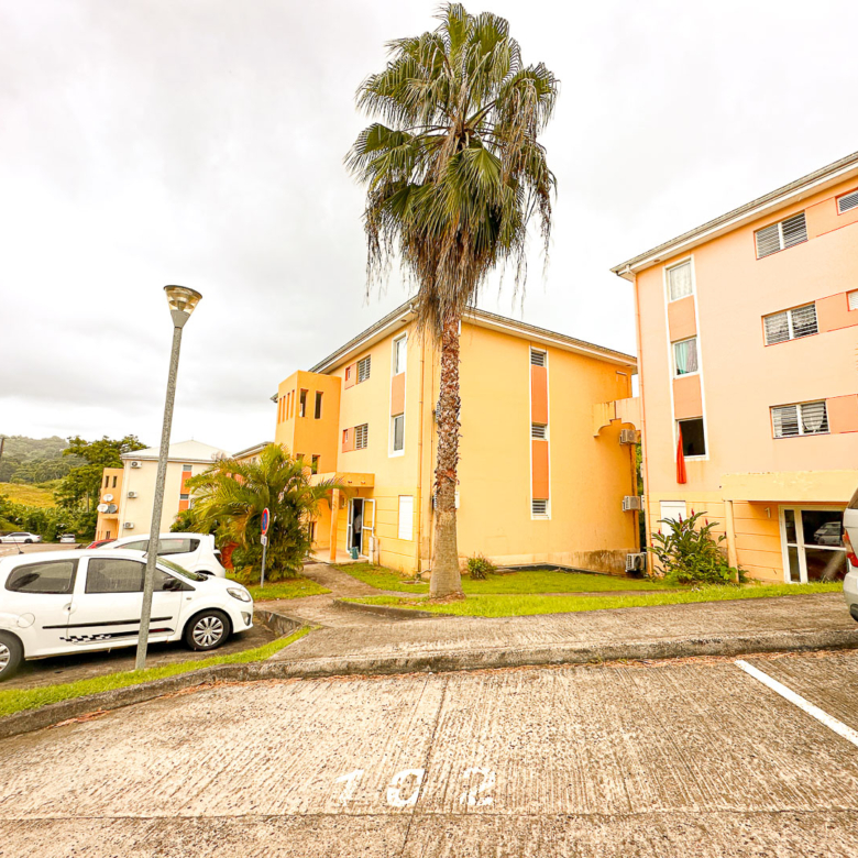 Quartier Mont Vert, Le Robert, un appartement de type T2 loué en rez-de-chaussée, dans une résidence calme et bien située dans un environnement campagne et apaisant. L’appartement se compose d’un grand séjour, une cuisine ouverte, 1 chambre climatisée, un wc visiteur, une terrasse vue campagne. En extérieur 1 place de parking intérieur non couverte. Surface habitable: 46m2 – Charges de copropriété : 300€/trimestre. L’appartement est actuellement vendu loué : Loyer : 527€ – Prov. de charge : 49€.